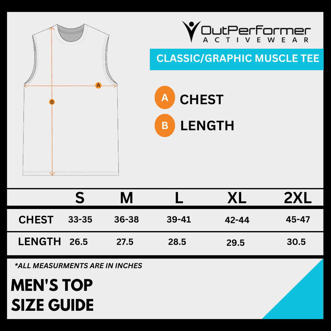 Outperformer Loose Fit Graphic Muscle Tee features open-cut sleeves that give some extra breathability. Lightweight wicking fabric to keep you move freely, comfortable, and feels dry. Perfect for gym workouts, or everyday use.